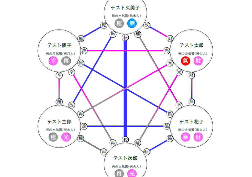 生年月日から御縁関係を導き出します。成長のご縁、氣づきのご縁、鏡のご縁なども分かります。(2名~6名まで)